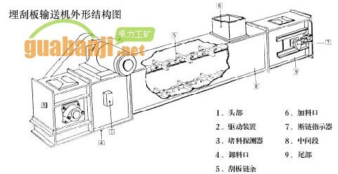 埋bv伟德官网中文官网将敞开的溜槽,作为煤炭、矸石或物料等的承受件,将刮板固定在链条上作为牵引构件。当机头传动部启动后,带动机头轴上的链轮旋转,使刮板链循环运行带动物料沿着溜槽移动,直至到机头部卸载。刮板链绕过链轮作无级闭合循环运行,完成物料的输送。