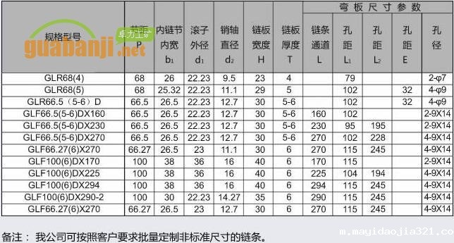 | GL型带滚珠刮板链条技术参数表 | |||||||